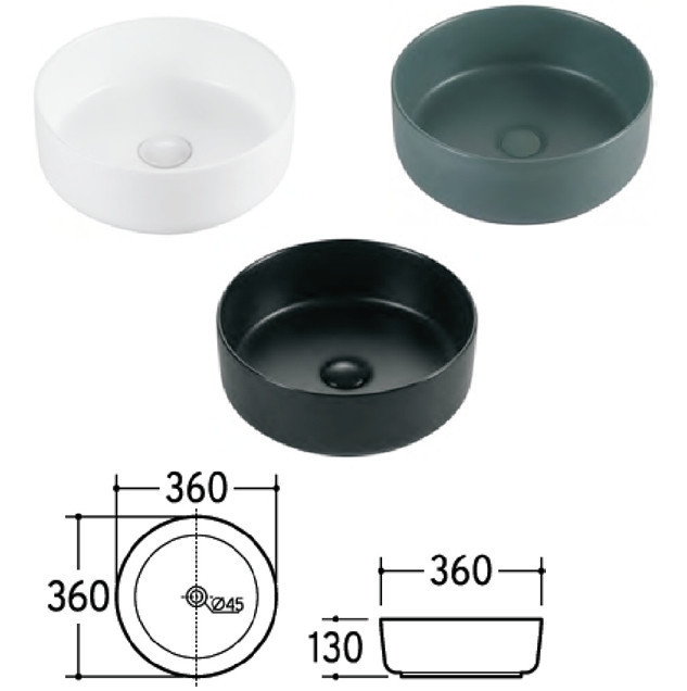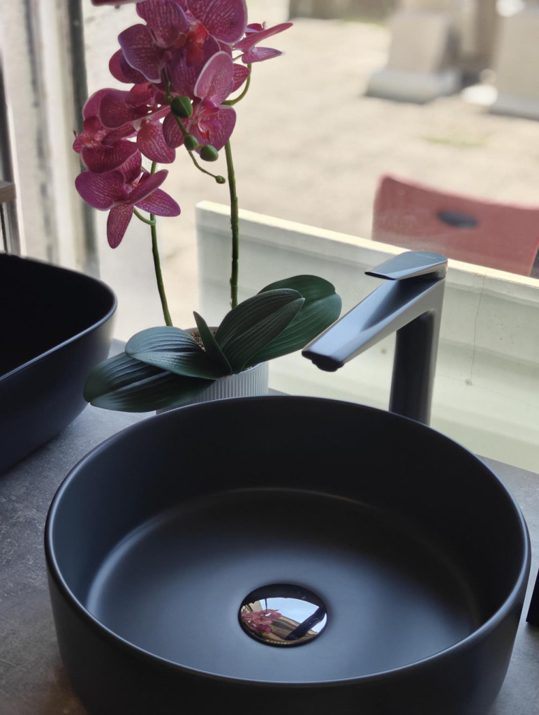 Eros SIMPLE 8 - PULTRA ültethető - Top Counter - porcelán mosdó - MATT FEKETE - 36 x 36 x 13 cm