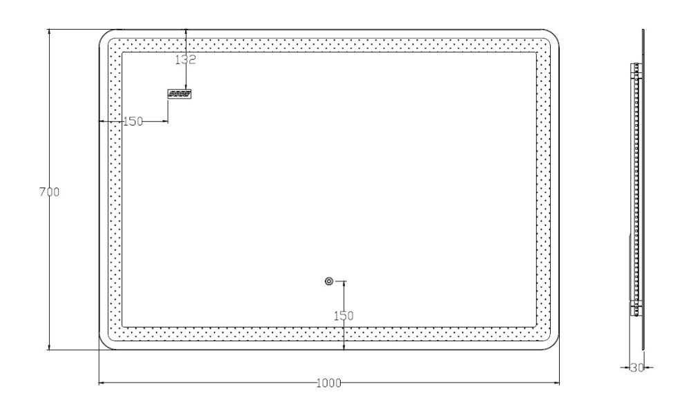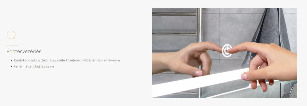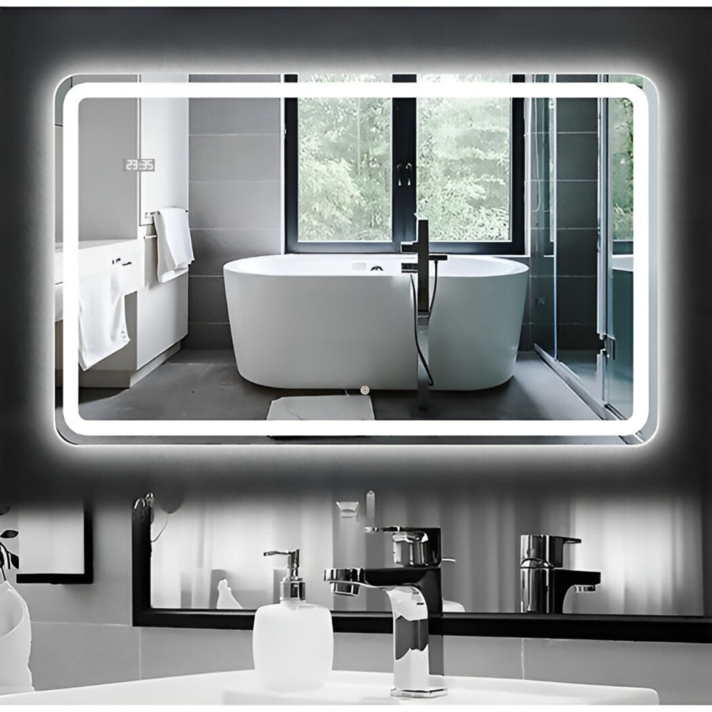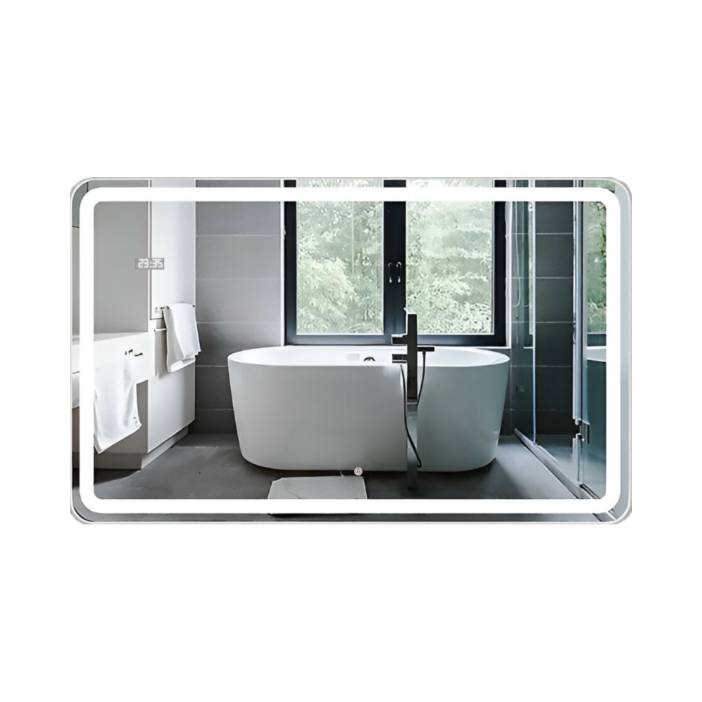 Viva AURA fürdőszoba tükör - érintőkapcsolós - páramenetesítős - órával - LED - FEKVŐ - 100 x 70 cm