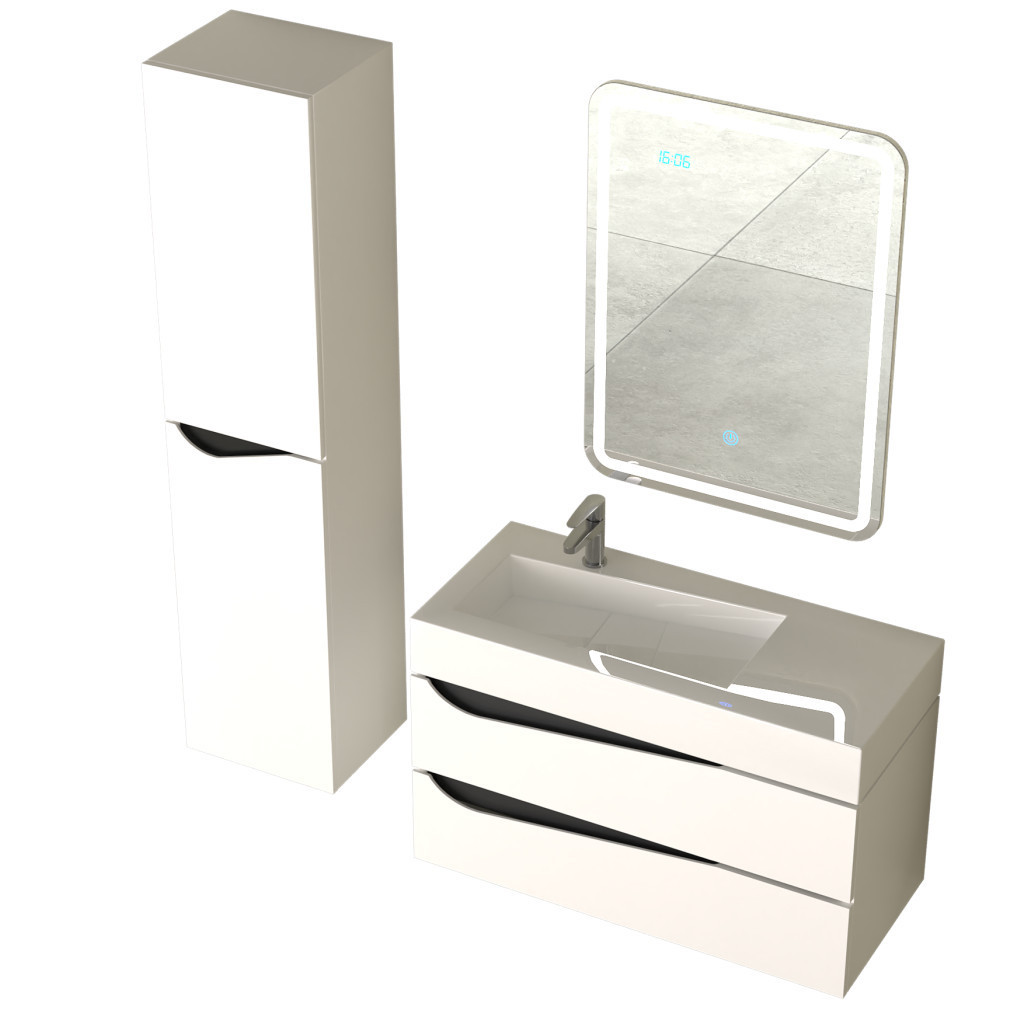 Piramida EURIDIKA fali fürdőszobabútor - műmárvány mosdóval -2 fiókos - ALPINFEHÉR-FEKETE - 90 x 41 x 56 cm