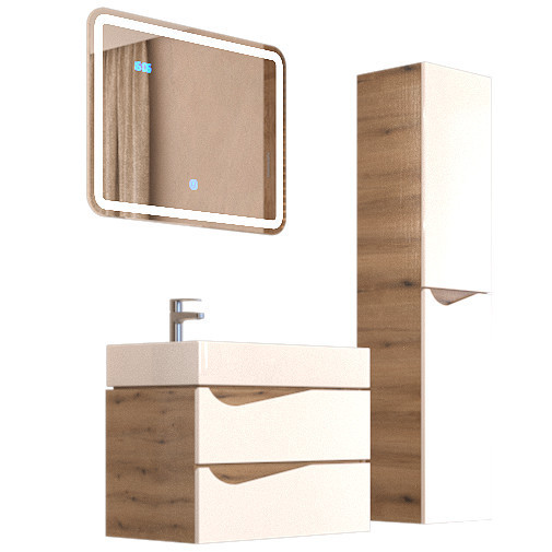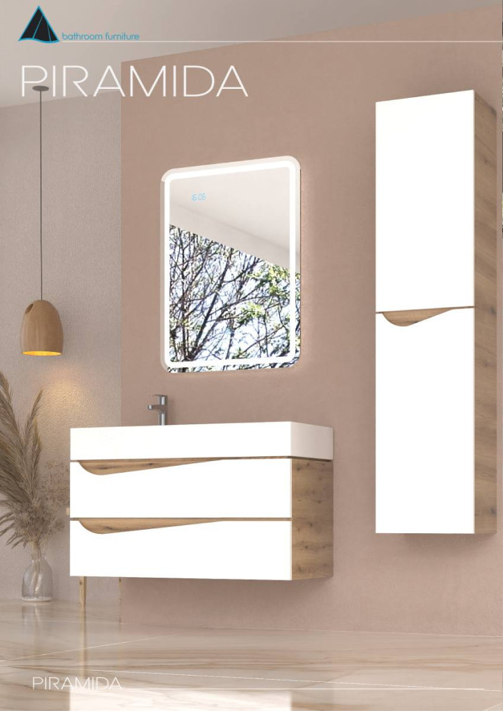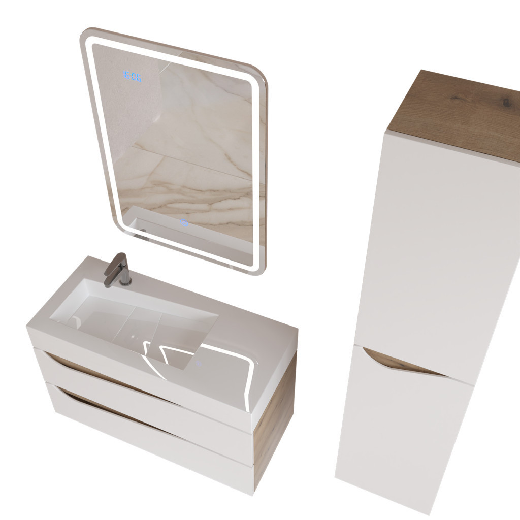 Piramida EURIDIKA fali fürdőszobabútor - műmárvány mosdóval -2 fiókos - ALPINFEHÉR-TÖLGY - 90 x 41 x 56 cm