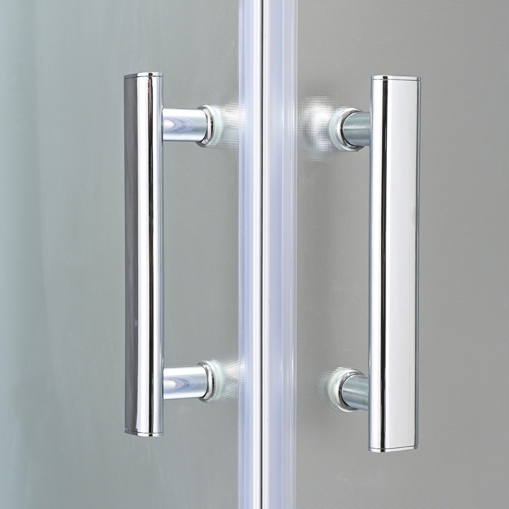 A Leziter Spirit Matt zuhanykabin szögletes formája végett illeszkedik a sarokba, így helytakarékos elrendezést kínál, miközben tágas és kényelmes zuhanyzási teret biztosít. A krómozott alumínium profilok és a 16 cm-es fém fogantyúk stabil, masszív szerkezetet adnak, amely hosszú távon is megőrzi formáját és fényét. A matt biztonsági üveg természetes hatású, világos felületet alkot, amely megőrzi a tér nyitottságát, ugyanakkor kellemesen diszkrét megjelenést kölcsönöz a zuhanyzónak.