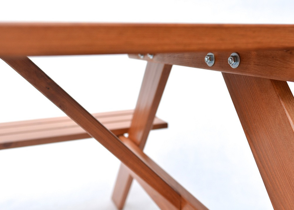 A Rojaplast PIKNIK kerti bútor garnitúrája minőségi fenyőfából készült, melyet rendkívüli tartósság és élettartam jellemez. A kiváló kidolgozás hosszú távú használatot biztosít. A Rojaplast tökéletes szériájának ezen változatának asztala egybeépíthető padokkal rendelkezik. A gesztenyebarna színű, lakkozott bútor garnitúra tökéletes választás a kerti rendezvényekhez, piknikekhez.